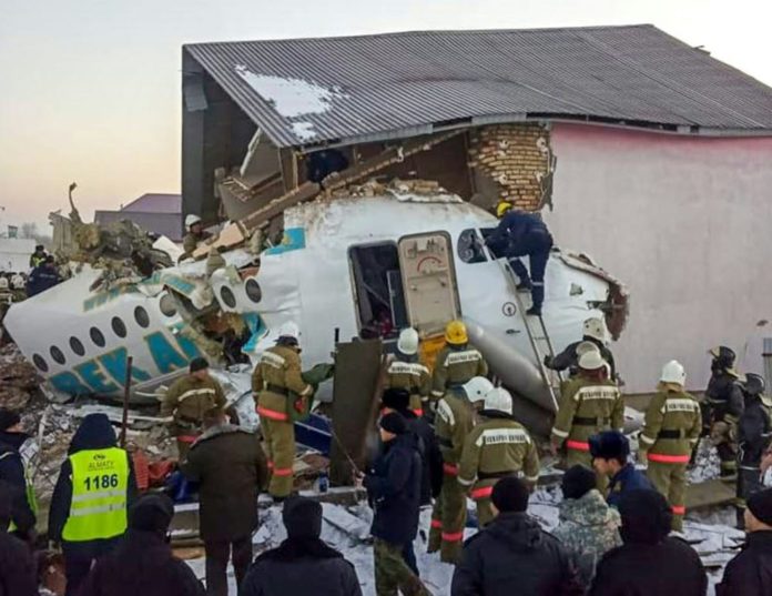 L’appareil, un Fokker-100 de la compagnie locale à bas coût Bek Air, est tombé une quinzaine de minutes après son décollage à 07H05 (01H05 GMT) de l’aéroport d’Almaty, poumon économique du Kazakhstan, à destination de la capitale, Nur-Sultan, plus au nord.