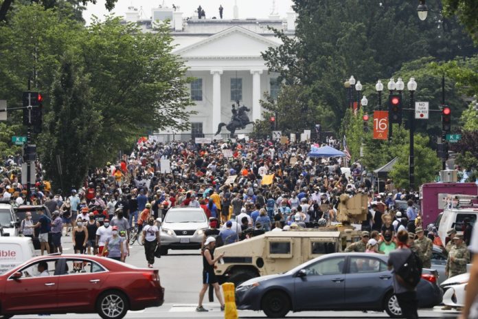 «Retirez votre genou de notre cou!» Des milliers de manifestants convergaient samedi vers le centre de Washington pour protester contre le racisme et les brutalités policières lors d’une journée marquée par une nouvelle cérémonie à la mémoire de George Floyd.